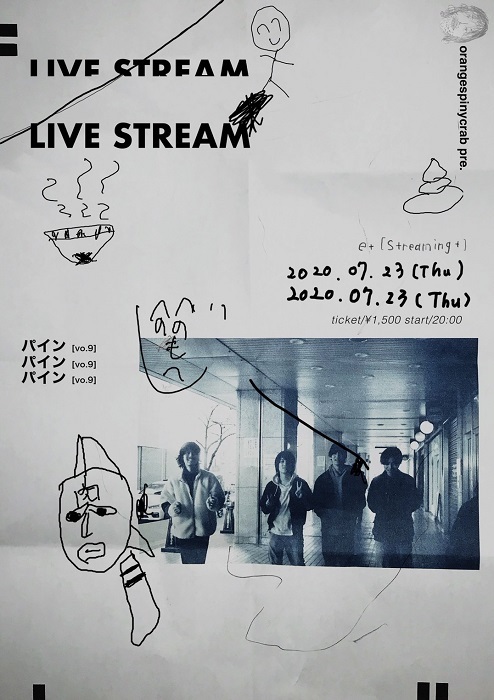 茨城県出身4人組ロックバンド、オレンジスパイニクラブが、2020年7月23日(木)20時からバンド初の無観客ライブ配信『パインvol.9』を開催する。
