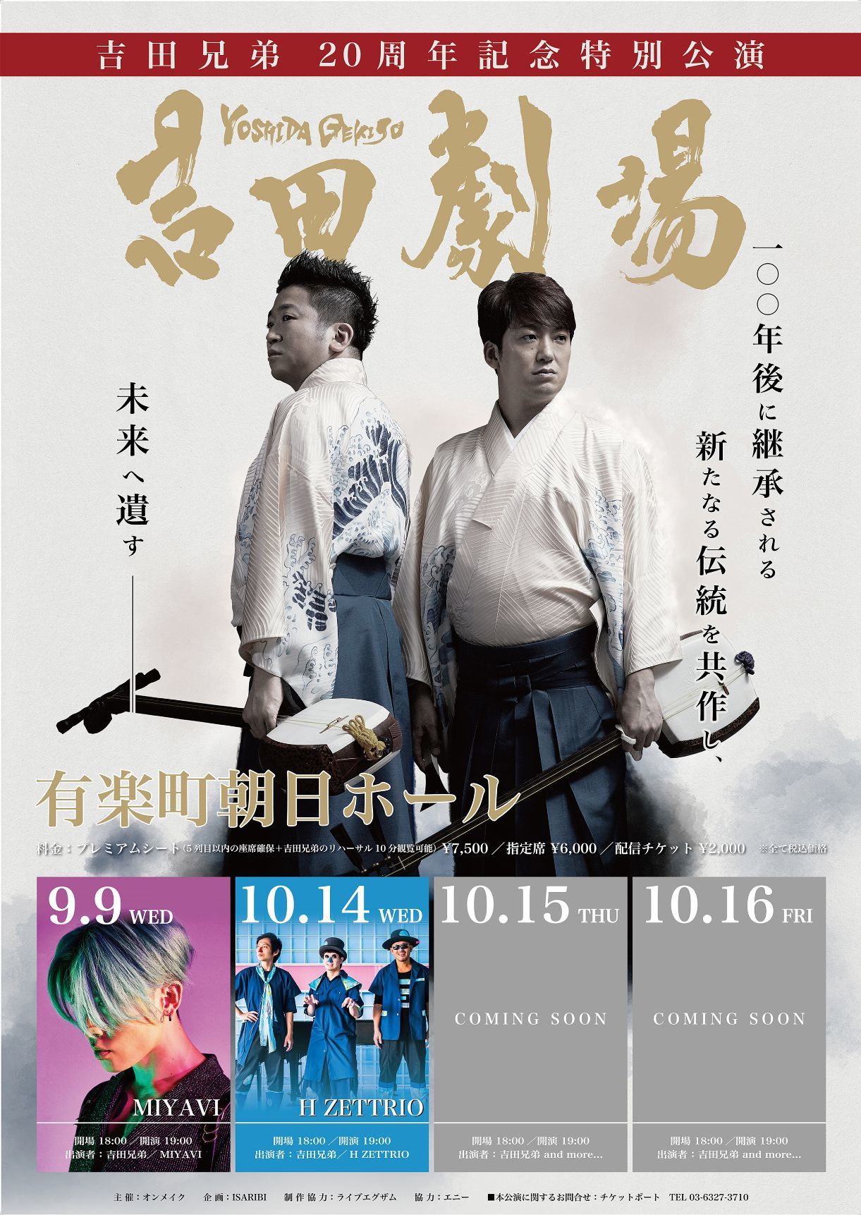 『吉田劇場2020』は、吉田兄弟がデビュー20周年記念特別公演として開催するもの。「100年後に継承される新たなる伝統を共作し、未来へ遺す」をテーマに、ジャンルの垣根を超えた様々なアーティストとのコラボレーションが行われるという。