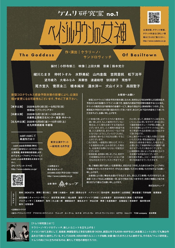 本作の日程は、東京公演が2020年9月13日(日)〜27日(日)世田谷パブリックシアター、兵庫公演が10月1日(木)〜10月4日 (日)兵庫県立芸術文化センター 阪急 中ホール、北九州公演が10月9日(金)・10日(土)北九州芸術劇場 中劇場にて行われる。