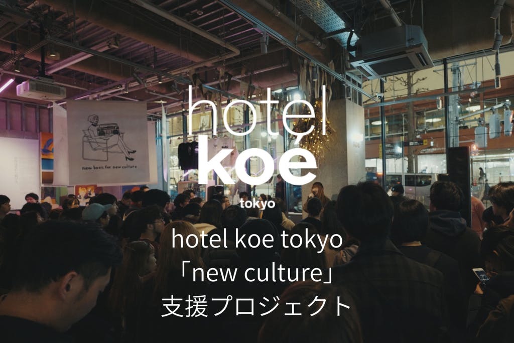 hotel koe tokyoは、koeのブランドコンセプトである“new basic for new culture”を体現する場として、2018年2月に渋谷宇田川町に開業した。“公園通りスクランブル交差点に面したガラス張りの建物”というオープンなロケーションを活かし、渋谷のカルチャーを築いてきた人々から注目の若手まで、さまざまなスタイルのアーティストを招き、週末を中心にイベントを実施。2020年2月には3日間に渡る2周年イベントを開催した。