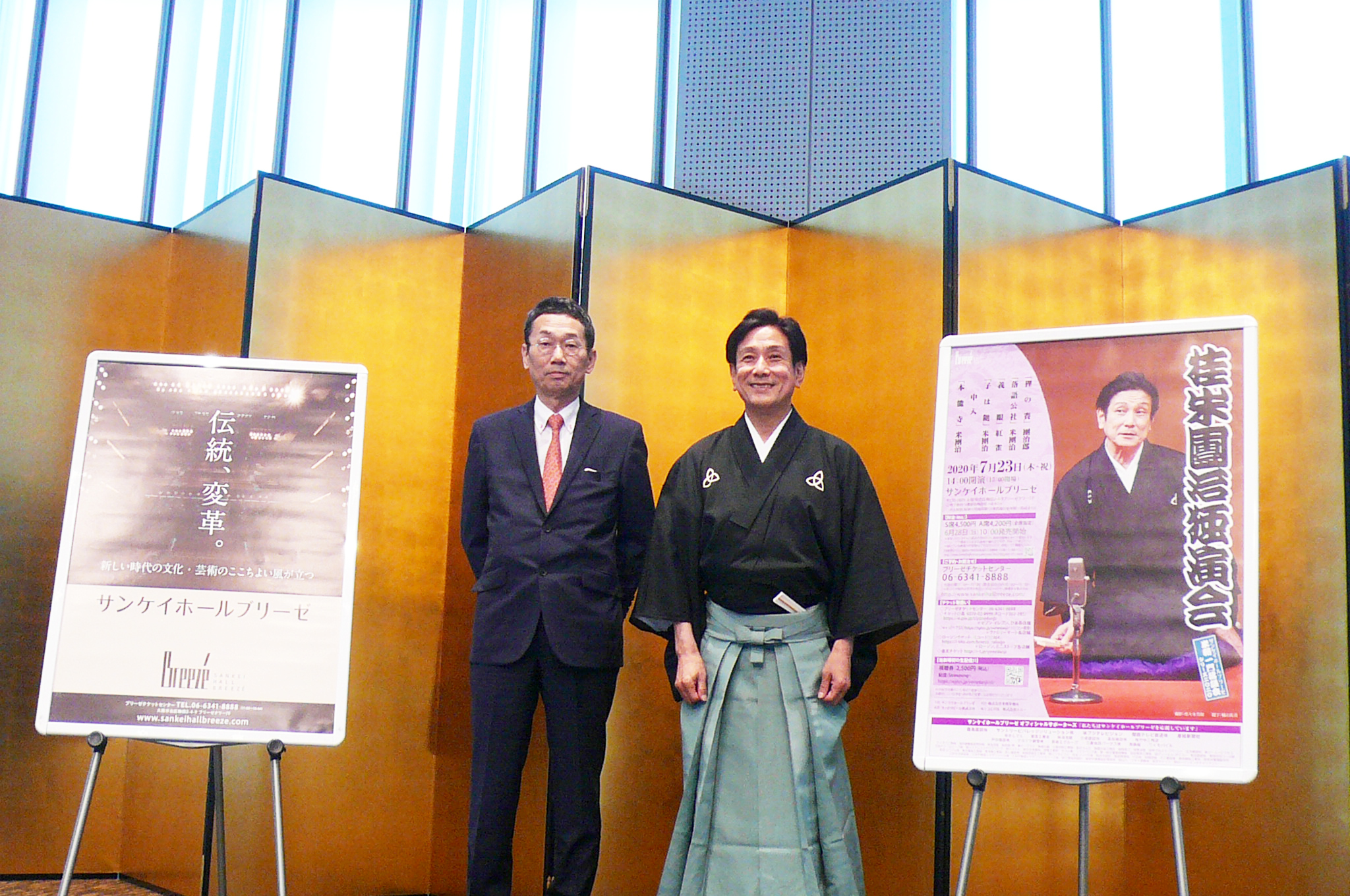 7月23日(木・祝)、大阪梅田のサンケイホールブリーゼにて『サンケイホールブリーゼ米朝一門落語会シリーズ2020 桂米團治独演会』が開催される。『桂米團治独演会』は、2008年の同会場オープン以来、毎年7月に行われており、今年で12回目となる。新型コロナウイルス感染拡大による営業自粛要請で、同会場も4月2日から劇場運営ができなくなっていたが、ようやく光が見え、主催公演の再開が本公演に決定した。だが、感染拡大防止ガイドラインに沿って、客席数を半分に減らした上で観客を入れ、同時にリモート生配信を行うという形での催しとなる。これは会場にとって初の試み。開催決定を受けて6月22日、ブリーゼプラザ小ホールにて落語家・桂米團治と株式会社ブリーゼアーツ代表取締役・大竹正紘氏の合同会見が行われた。決意の会見の様子をレポートする。