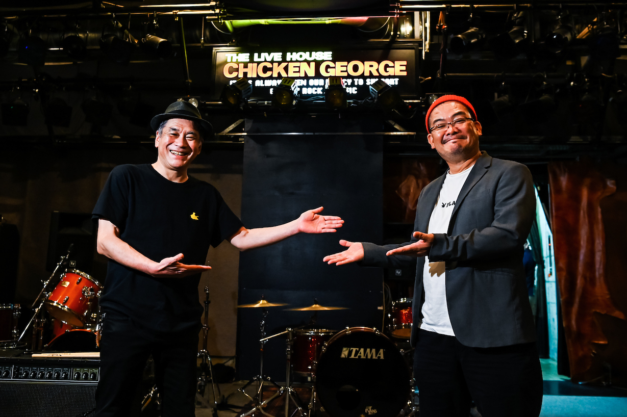1995年に神戸で結成し、今年25周年を迎えた劇団赤鬼が7月10日(金)〜7月12日(日)に無観客配信公演『EDIH CU AHINO」 (エディ チュ アヒーノ)』を行う。劇団赤鬼にとって初めてとなるオンライン公演。それは会場となるライブハウス・チキンジョージにとっても初めてのことだ。神戸・チキンジョージは1980年のオープンから数度の建て替えを経て、2020年で40周年を迎える。どちらも神戸をホームグラウンドに、エンタメを長年発信し続けてきた。そんな両者が手を組み配信する、まさに「これぞ神戸のエンタメ」ともいえる今回のオンライン公演で、演出の川浪ナミヲが大切にするのは、神戸らしさとも言える「血の通い」だという。SPICEでは、今公演の演出を手掛ける、劇団赤鬼・川浪ナミヲとチキンジョージの専務取締役・児島勝との対談を実施。川浪の思い出も詰まったチキンジョージの歴史を振り返りつつ、現状のライブハウスについて、そしてオンライン公演にかける想いや、さらにはそれぞれの目線で見た神戸のエンタメ界隈について語ってもらった。
