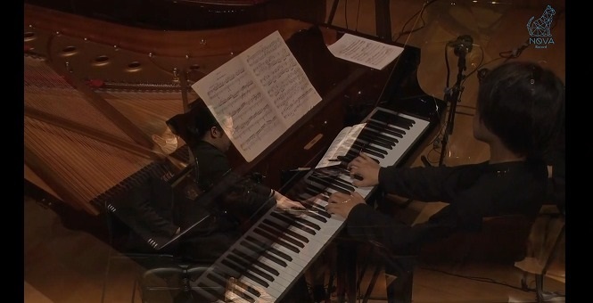 二人は最後に「可愛い曲で遊びます」とアンコール曲を披露。モーツァルトの原曲にグリーグが2台ピアノのパートを付け足したという「ピアノソナタ ハ長調K545」の第1楽章だ。繰り返しではプリモとセコンドを入れ替えながら、対旋律を大胆に響かせたり、引っ込めたりと、まさに遊び心に溢れた演奏で朗らかに締めくくった。