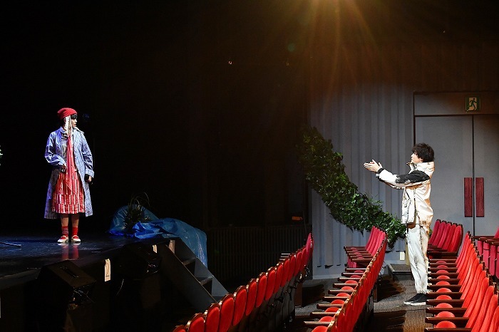 拍手の意味、カーテンコールを知らないミナモと古き良き時代を知っているヒダリメとの会話はシアタークリエの客席通路、そして座席の中などを自由に動きながら交わされていた。無観客上演を上手く活かした演出だったが、是非観客が入ってからの公演でもなんとかうまく取り入れて欲しいと願うばかりだ。
