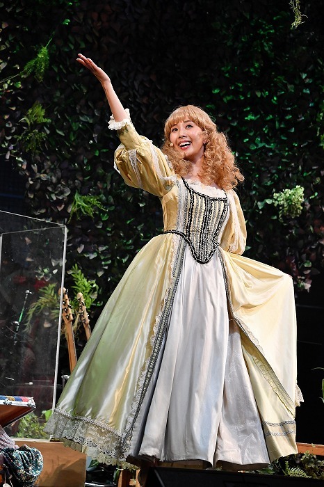 生演奏で繰り広げられる歌は女性三名と男性一名という混成ハーモニー。妃海の眩しい太陽のような明るい声、田村のキュートなシュガーボイス、森本の圧のある中低音に、木村ののびやかな歌声のコラボはまさに本格的オリジナル・ミュージカル。この顔ぶれでいつか別の作品でまた歌声を聴いてみたい。