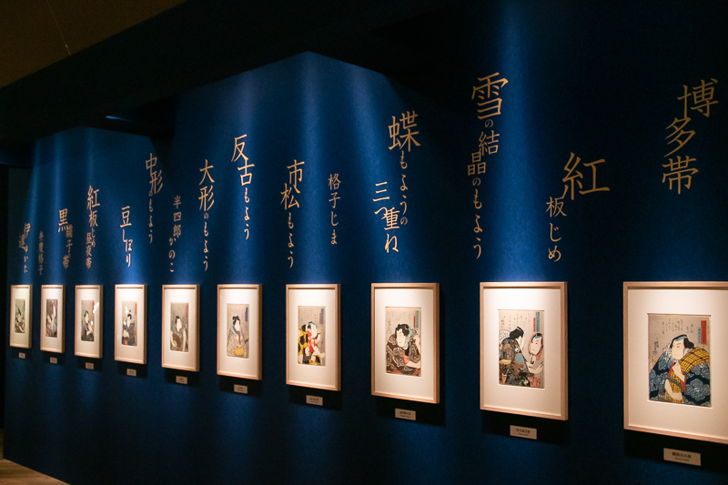 特別展『きもの KIMONO』展示風景: 歌舞伎でお馴染みの侠客たちの着こなしを、浮世絵で確認できる。