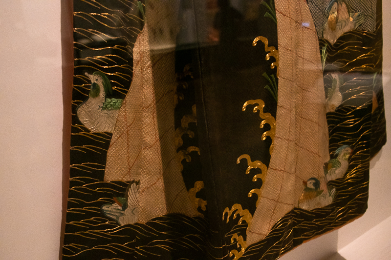 重要文化財《小袖 黒綸子地波鴛鴦模様(部分)》東京国立博物館