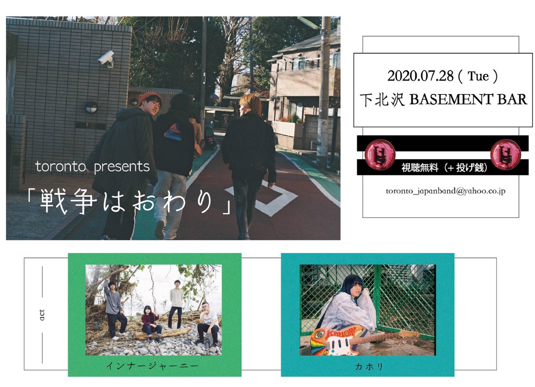 7月28日(火)に下北沢Basement Barにて開催される、torontoのレコ発生配信ライブ『戦争はおわり』の詳細と新たにゲスト2組が発表された。