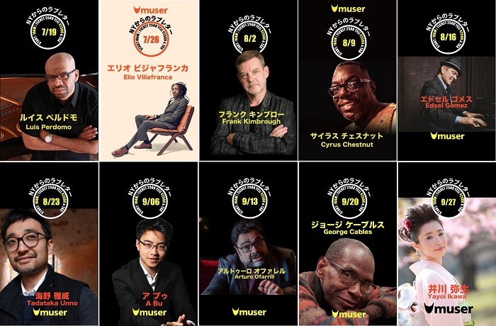 2020年7月19(日)~9月27日(日)毎週日曜日10:00(日本時間)より、ニューヨークのクラヴィアホールからの配信コンサートシリーズ『NYからのラブレター』が、音楽ライブ・コンサート生配信サービス「MUSER」にて配信されることが決定した。