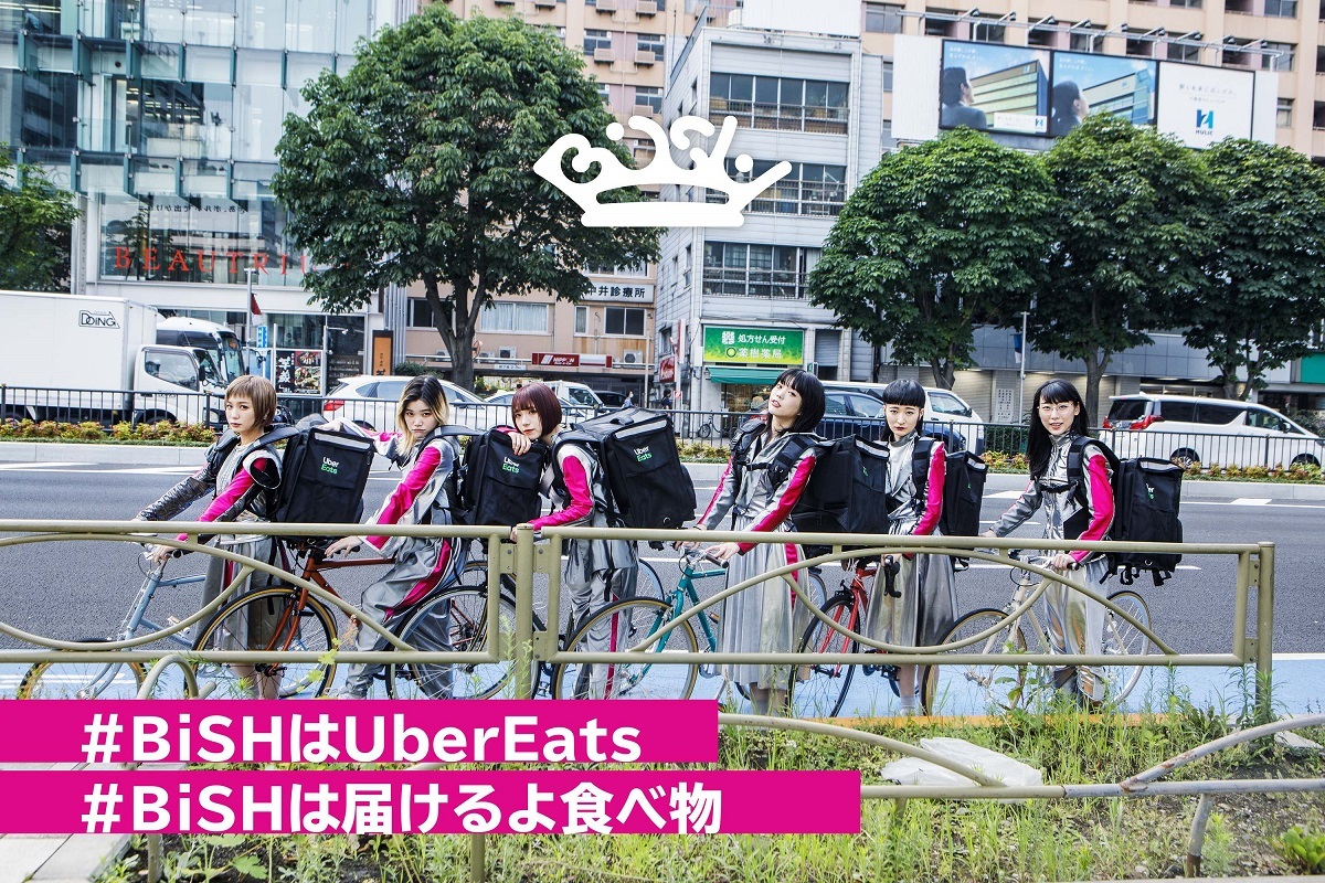 BiSHが本日7月14日、公式Twitterとホームページにて、自転車に跨りUber Eatsの配達用バッグを背負ったメンバーのヴィジュアルを公開、「#BiSHは届けるよ食べ物」の開催を発表した。