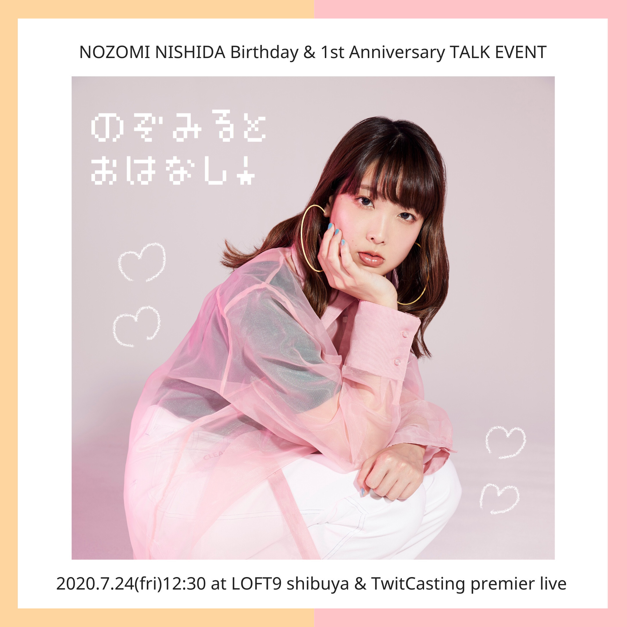 7月22日に誕生日、7月24日にソロデビュー1周年記念日を迎える西田望見。少しでも皆さまと楽しい時間を共有できたら……と、リアル&配信イベントを企画したそう。彼女のこれまでの活動を振り返りながら、まったりと過ごす約2時間。