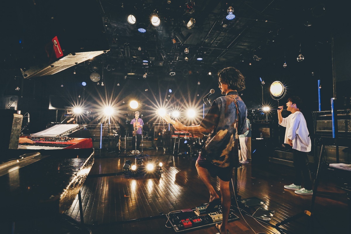 歓声や拍手の代わりにSTUTSがレゲエホーンを鳴らすのだが、長岡に「レゲエホーン出し係」といじられたり、トークはいつも通り。が、演奏に入るといきなりタイトで息の合ったところを見せるギャップもこのバンドの魅力だ。ブレイクの多い「湯気」や後ろ乗りの「ステップ」での河村のリズムを瓦解させない構築力、情景を広げる武嶋のサックス。時とともに変化するアレンジの妙を味わい尽くす。星野、長岡二人でカッティングを聴かせた「桜の森」に至っては、ライブ音源を購入したい程のクオリティ。