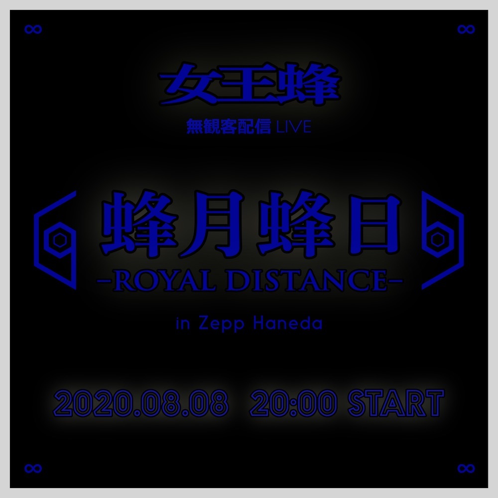 女王蜂が8月8日(土)に自身初の無観客配信ライブ『蜂月蜂日〜ROYAL DISTANCE〜in Zepp Haneda』を開催することが決定した。