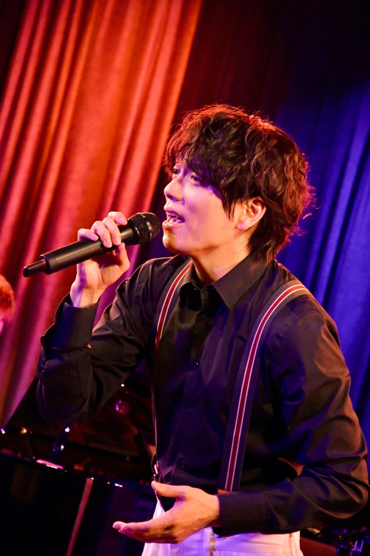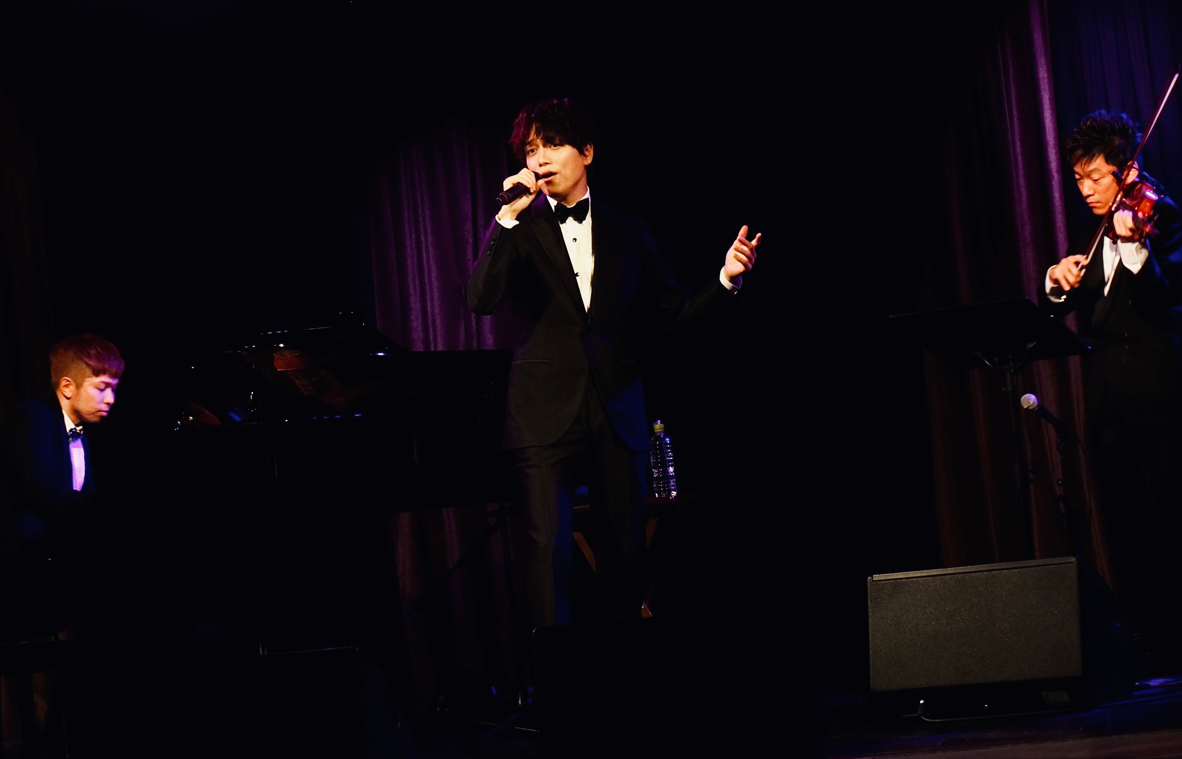 ライブは、昼公演を「マチネ」、夜公演を「ソワレ」とし、内容を変えて2回の公演を開催。「マチネ」は、開演と同時に黒のタキシードに身を包んだ育三郎が画面に現れ、オリジナル曲「Congratulations」で封切り。ピアノとバイオリンが演奏するステージを正面に、コの字型に右と左に志向を凝らした、高級ホテルを思わせる豪華なステージでパフォーマンスが始まった。