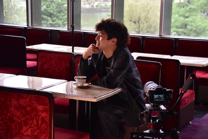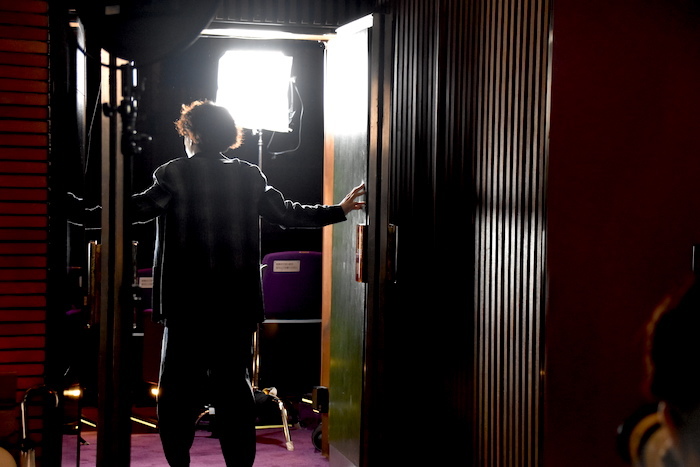 続いて、配信の開演直前に流れるOP動画の場面。喫茶室を出て、帝国劇場の階段を降り、そして光あふれる劇場の中へと入っていく。一応の台本はあるものの、藤田は撮影時、随所で自分の言葉で思いを伝えている。1、2分、沈黙して、考える。特に印象的だったのは、「帝国劇場の再開です」「最後のピースを埋めてくださるのはお客様です」という言葉だ。その重みと、込められた思いを噛み締め、そばで見ていただけなのに、胸が熱くなる。