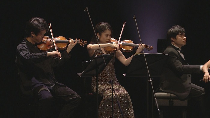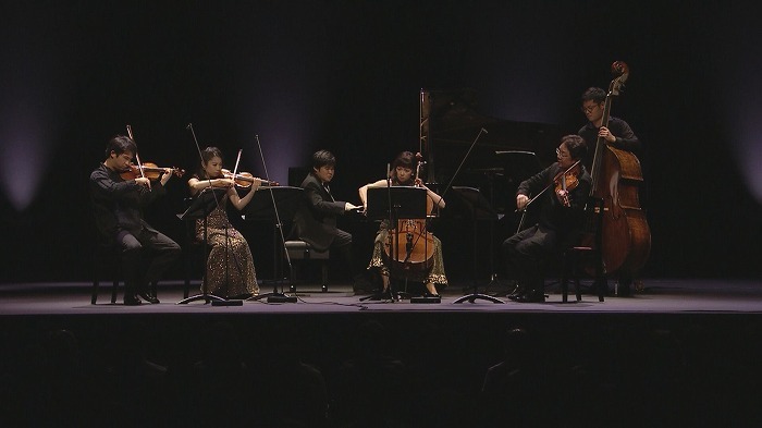 興奮が収まらないままの後半。ヴァイオリンの三浦文彰、同・川久保賜紀、ヴィオラの鈴木康浩、チェロの遠藤真理、コントラバスの加藤雄太とともに舞台に戻った辻井は、ショパンの「ピアノ協奏曲第2番[室内楽版]」を披露。ショパンが初恋の女性、コンスタンツィア・グワドコフスカを思い制作した一曲だ。躍動するピアノは変化する心を、わき起こる衝動は情熱的なヴィオラ、きしむコントラバスの音は苦しい思いを、繊細なヴァイオリンはショパンが1年半の間、大切にしていた恋心を表していた。