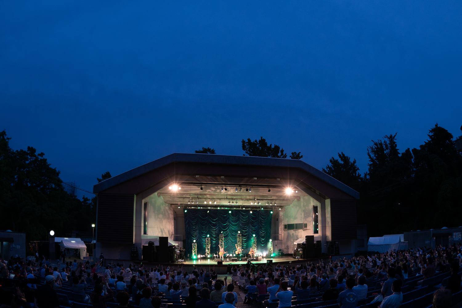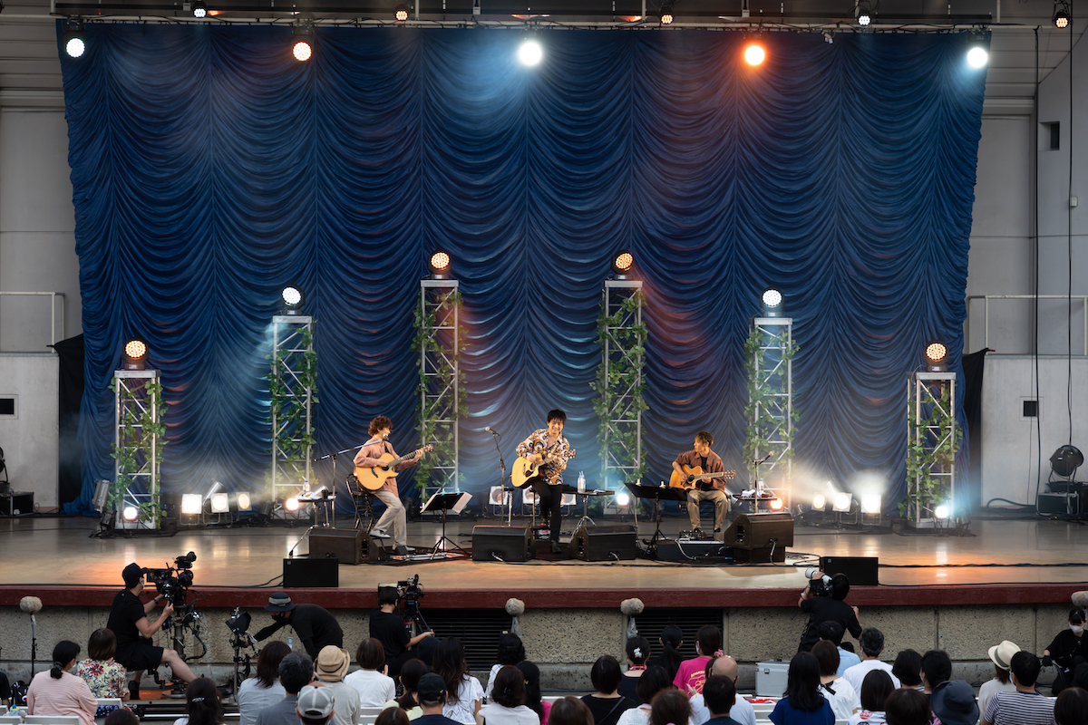 新型コロナウイルス禍により休業を余儀なくされていた在阪のコンサートプロモーター、GREENSのライブ再開イベント第1弾として行われたこの日。多くの名演を生んできた大阪城音楽堂にとっても同様で、緑に囲まれた開放感たっぷりのステージに、久々に音楽が鳴り響いた記念すべき1日となった。