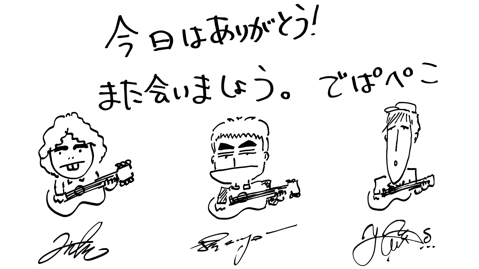 自粛期間中に押尾の奏法を練習したという三浦が「押尾さんすごいな!」とその超絶技巧に改めて感心しながら、「今日という日をすごく楽しみにしてきました。ライブを終えた後、僕は心の中でこうつぶやくでしょう」(三浦)と、「いい日だったね。」を披露。DEPAPEPEのキャリア初期からの1曲が、じんわりと胸に沁みわたる。