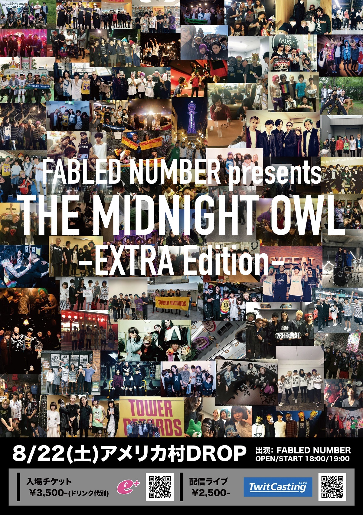 FABLED NUMBERが8月22日(土)に大阪アメリカ村DROPにて、脱退するドラマー、Mr,Donuld Betchとのラストライブとなる主催イベント『THE MIDNIGHT OWL』~EXTRA Edition~を開催することを発表した。