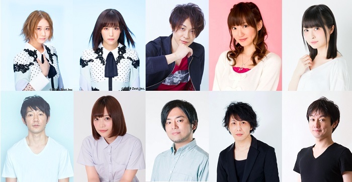 (上段左から)古畑奈和、鎌田菜月、藤原祐規、阿澄佳奈、吉岡茉祐 (下段左から)寺田剛史、小山百代、氏次啓、江田由紀浩、小林エレキ