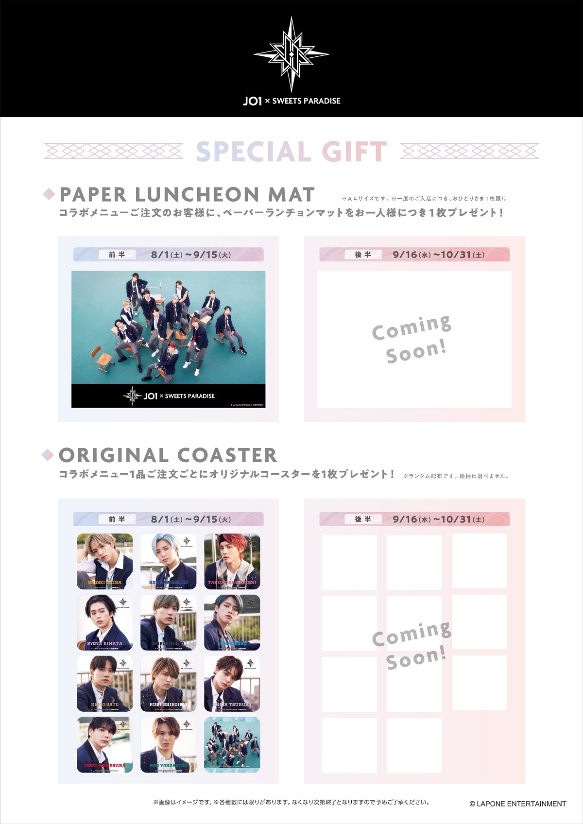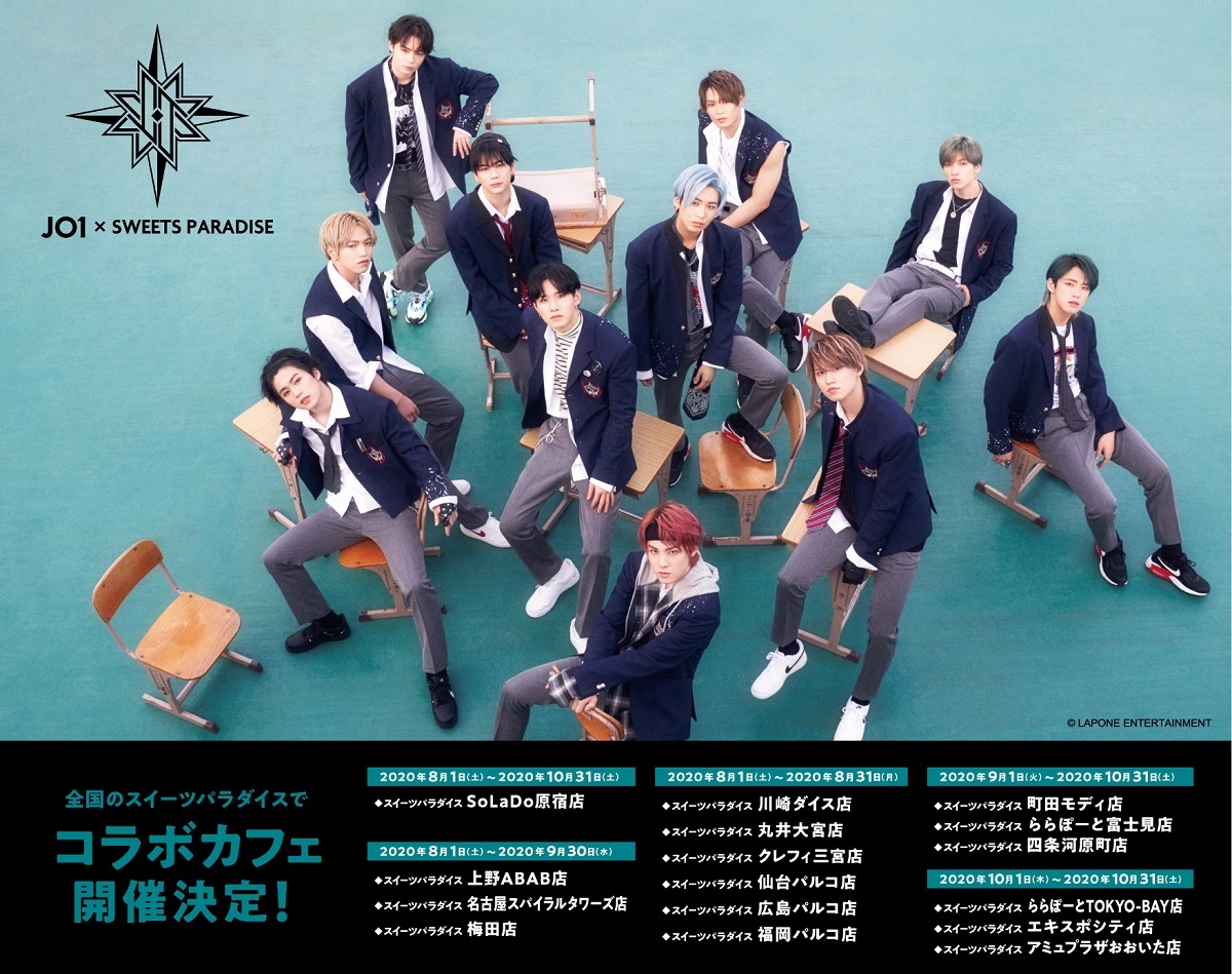 JO1とスイーツパラダイスのコラボカフェが、全国16店舗で順次開催される。
