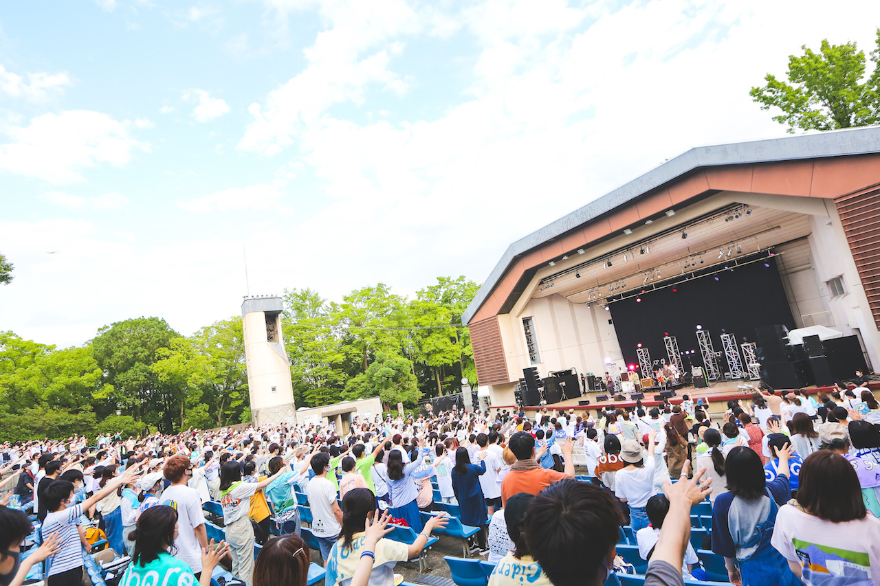 そんな前置きも踏まえると、無事に開催できるのだろうか?チケットを購入しながらも不安に感じていた人も多いはず。それまでの週末が雨続きだったこともあり、天気も心配であったが、当日は久しぶりの晴れ。梅雨の切れ間、大阪城音楽堂でのライブにピッタリな気候となった。