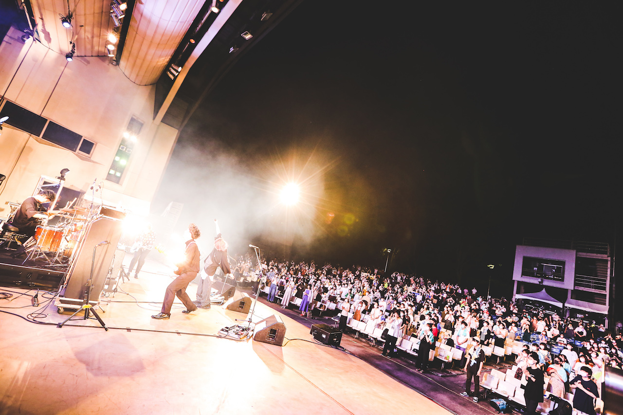 「こんな最高な日にライブができてとても幸せ。できることなら、年内にまた大阪のみんなに会いに来たい」と大阪への愛も。そしてラストに奏でたのは「春の中に」。時期に関係なく、春をテーマにした曲を作りたかったと、今年の5月末にリリースした通信販売限定のシングルだ。兼丸が「あなたの心に力を添えられる曲になれれば」と話し、爽やかなメロディが流れ込むと、楽曲に宿る春の温かさが、距離の取られた客席をもぴっちりと埋め尽くす。「大丈夫」この言葉にきっとみんな救われただろう。ずっと聴いていたくなる余韻にたっぷりと酔いしれながら、大きな拍手でメンバーを送り出した。
