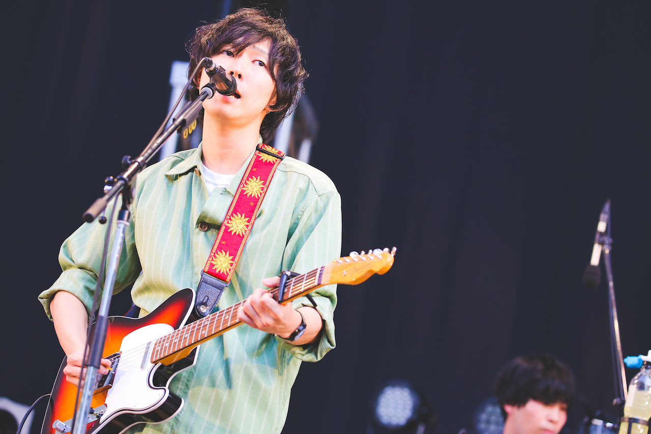 「前のりで大阪に着いて、この1日のために寝れなくて、遠足の前の日の小学生みたいだった。晴れてよかった。笑って行こう!」と佐藤 赳(Gt.Vo)のショートMCを挟むと8月5日にリリースされるメジャーデビューアルバム『風景になって』より「HAPPY SONG」を披露。koboreのカラフルなグッズタオルを肩にかけたライブキッズたちが夕日に照らされ、キラキラして見えた。「止まるな!やるしかないんだ!止まるなテレキャスター!」の掛け声をきっかけに「テレキャスター」へ。止まることなく「幸せ」「ヨルノカタスミ」へと続くと客席ではより強く握られた拳が宙に浮かぶ。そう、この景色をライブハウスで見たい……、と、そう思った人もたくさんいただろう。