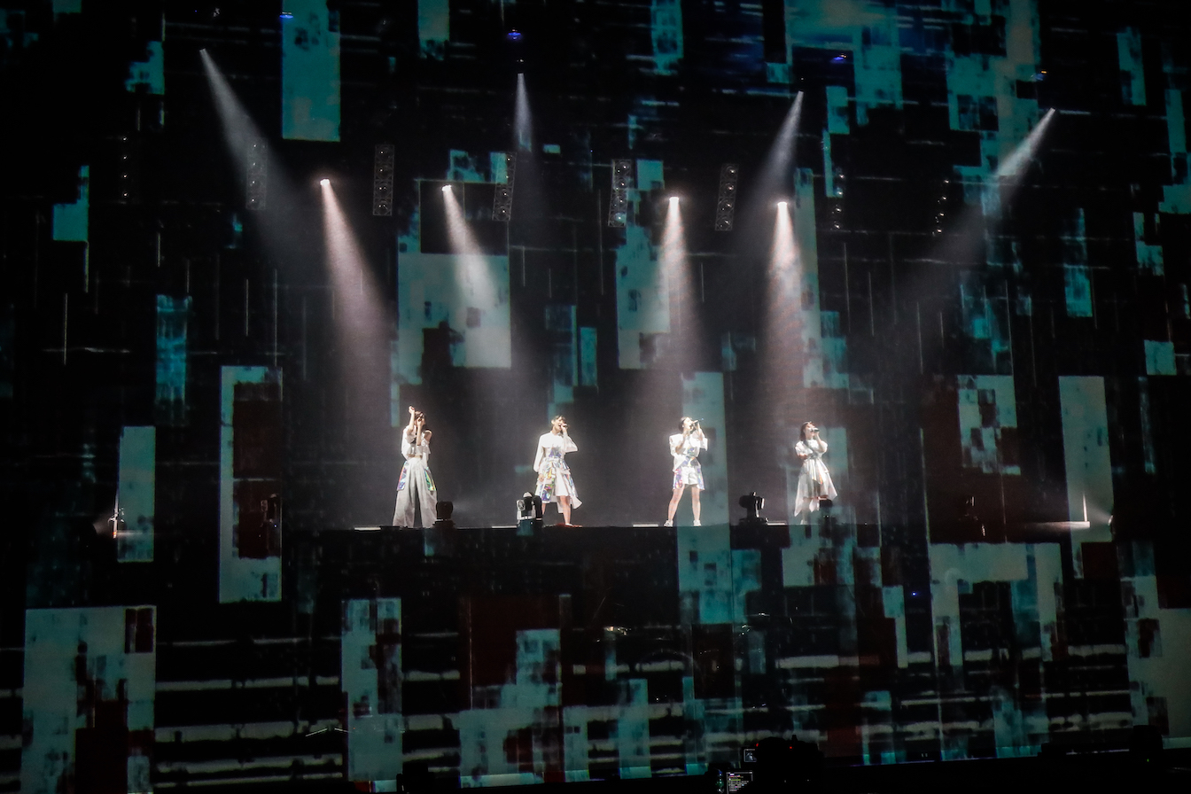 尺八の音色が鳴り響き、坂本遥奈の演舞にあわせて筆文字がマッピングされる映像で幕を開けた「We Are…」、琴の演奏や「ヨオーッ!ポン!」の声と太鼓がインパクト大の「Cherie!」は、ともに和風アレンジ。19曲目「グラブジャムン」はスマホを使った撮影に切り替わり、メンバーもカメラにぐいぐいと迫ってくる。まるで4人が目の前にいるような感覚だ。その至近距離は、まさに「逆ソーシャルディスタンス」。配信ライブならではの視聴者との近さだった。