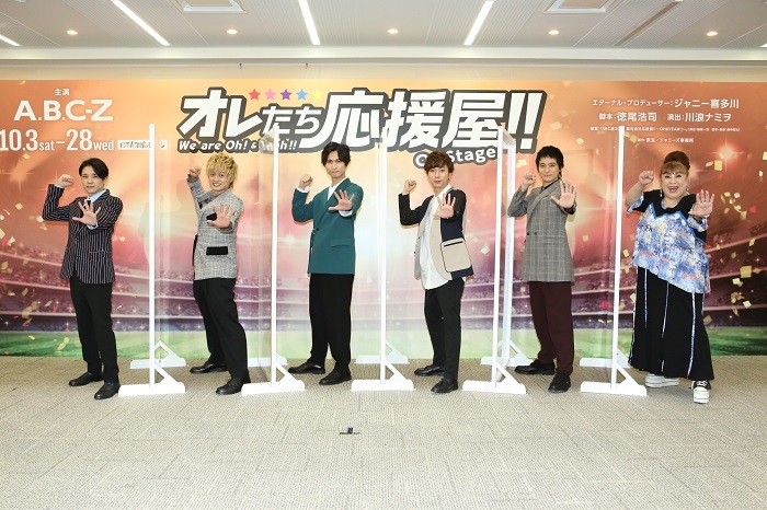 2020年10月にA.B.C-Z主演舞台『オレたち応援屋!! On Stage』が上演されることが決定し、7月30日(木)、主演のA.B.C-Zと出演の森公美子が登壇し製作発表が行われた。