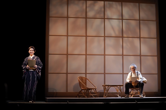 トリを飾ったのは、いのうえひでのりが初めて演出に挑んだ朗読劇。これは「劇場の灯を消すな!」シリーズ全体の“お題”で、井上ひさしの短編戯曲集『十二人の手紙』から一本をリーディングに仕立てる企画。いのうえが選んだのは、創作のために山に籠もる画家の夫と、留守を守る年の離れた妻のやりとりを描いた『鍵』。