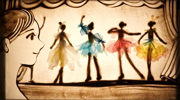 今村 街灯がピアノになるくだりはうれしかったなあ。完成版を朝5時くらいに送ってくれたでしょ。眠い目をこすりながら見たのに、感動してやばかったんです。舞踏会の始まりの場面もピアノの音をすごく立ててくれたり、サンドアートの鍵盤を登場させて演奏してくれたり。映像ってデジタルじゃないですか。だからこそ、つくり方は徹底的にアナログにしたいなと思ったし、彼女たちの手の動きも見せたかったんです。
