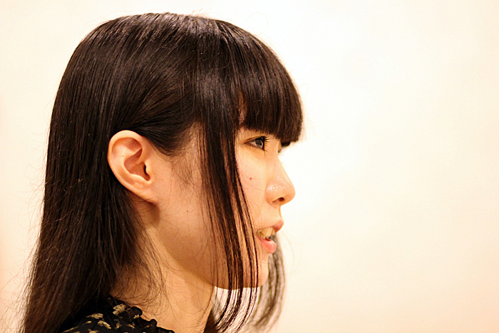 今村 朗読はいつも通りなんですけど、全体を見たときに、自分の声が嫌になってしまって、自分を消すのを課題にしていたんです。私自身もニュートラルな朗読の方が好きで、女の子なのか男の子なのかわからないようなちょっと控えめになるように意識しました。逆にサンドアートにスポットが当たるように言葉を削ってもいい?と提案して、私が最初につくった台本に沿って秒単位で映像をつくってくれていたのに、大混乱をさせてしまいました。私はサンドアートだけ、音楽とサンドアートだけの時間があってもいいと思ったんですけど、返事がこなかったんでちょっぴり焦りました。(笑)それは反省として、次回はそういう要素を最初から考えたりしていきたいです。