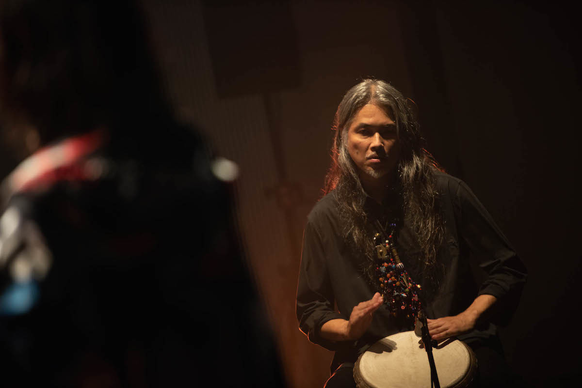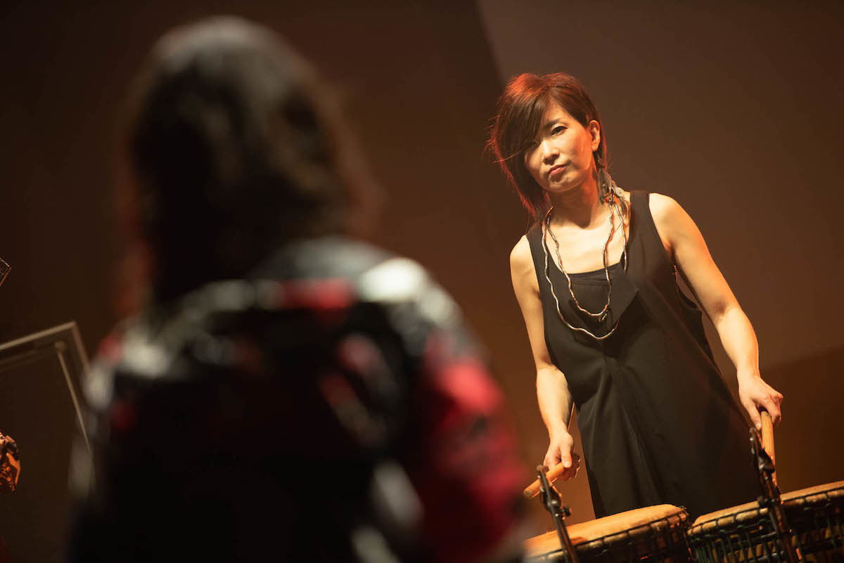 打楽器の放つビートはもっともプリミティヴな音楽の形であり、トーンも響きも違う単音同士が重なり合うことで生まれていくグルーヴは聞き手の本能に作用し、DNAレベルで高揚を誘ってくるような心地よさがある。とはいえ、低音の打撃が発する、文字通り空気を震わせる振動を物理的に体感することのできないオンライン環境では、一体どのようなライブ、空間が生まれていくのかは未知数。興味と期待を抱きながらPCのスクリーンに対峙した。