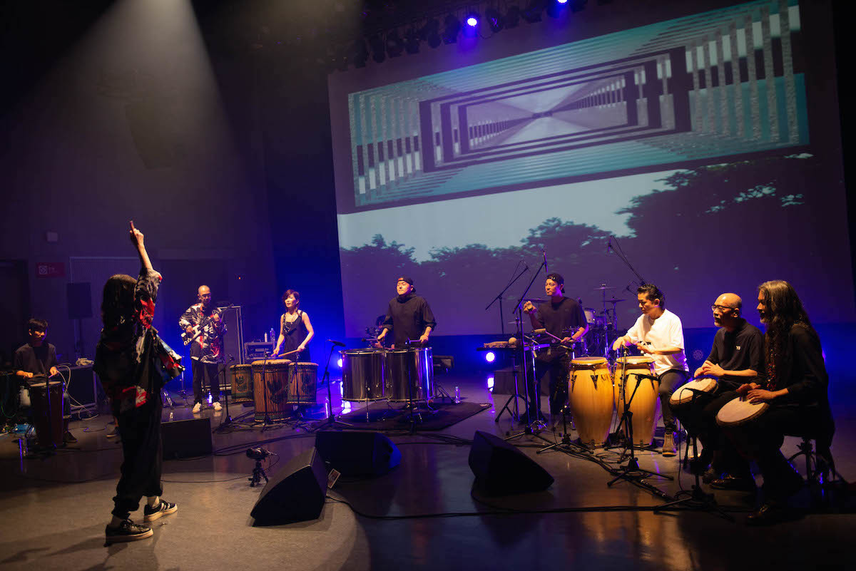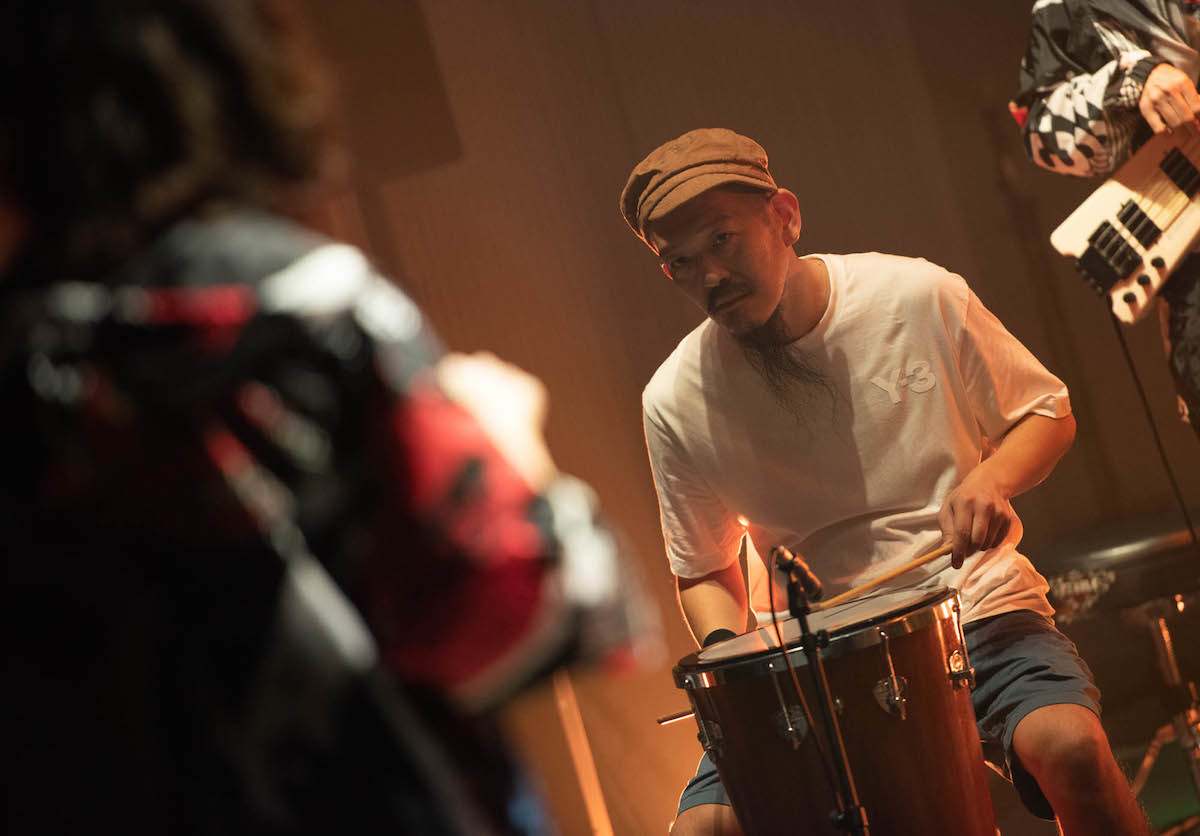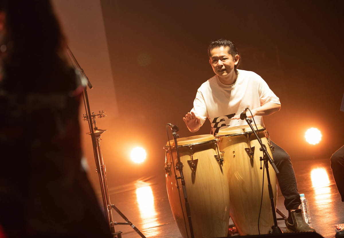 また、それぞれのプレイヤーの手元や楽器の姿形も、リアルライブの環境よりもはっきりと視認できるため、普段目にする機会の多くないそれぞれのパーカッションがどんな音色を出し、どんな特性を有しているのかといった見方でも楽しむことが可能に。彼らの発する音が合わさって生まれる、静と動が交錯しながら、ブレイクビーツやアフロビート、ラテンミュージックなど様々な要素が顔を覗かせるインプロビゼーションの応酬は非常にスリリングで、「お、そう展開するのか」「みんなテンションが上がってきたな」「そのリズムの変化はどうやって合わせたんだろう」などと、自然と見入ってしまう。配信だろうが見応えも聴き応えも十分である。