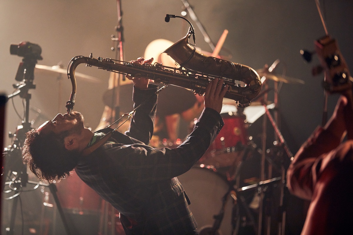 関谷のリズムを踏み台に藤田のサックスが勢いよく飛びあがる「Guns of saxophone」の、プリミティブなロックンロールの爽快感。伊藤が立ち上がってシンバルを引っぱたく、日本のあちこちの家家から、「YEAH! YEAH!」という叫びがたぶん今聴こえてる。そしてラストチューン「FULL DRIVE」の、マラソンの最後の100メートルを10秒で駆け抜けるようなありえないスピード感。織田の麦わら帽子のひさしから汗がしたたり落ちて光ってきれいだ。関谷がウッドベースを持ち上げて笑顔でポーズを決める。無観客って何だ? ここにちゃんと音楽があるじゃないか。