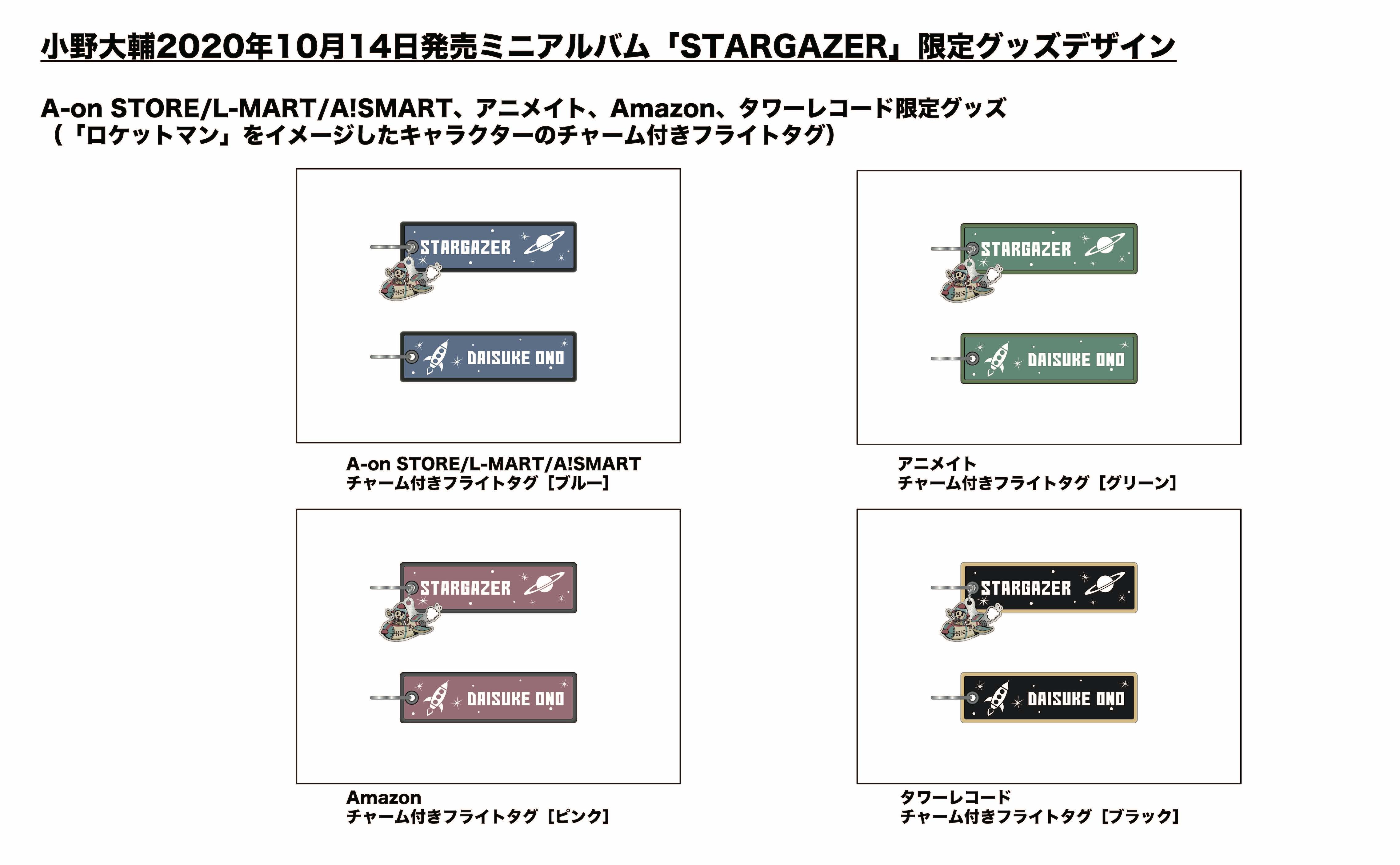 本日公開となったのは最新アーティスト写真と「STARGAZER」のジャケット写真、本人作詞によるリード曲「ROCKET MAN」のティザー映像。さらに、A-on STORE/L-MART/A!SMART限定グッズのデザインも公開された。