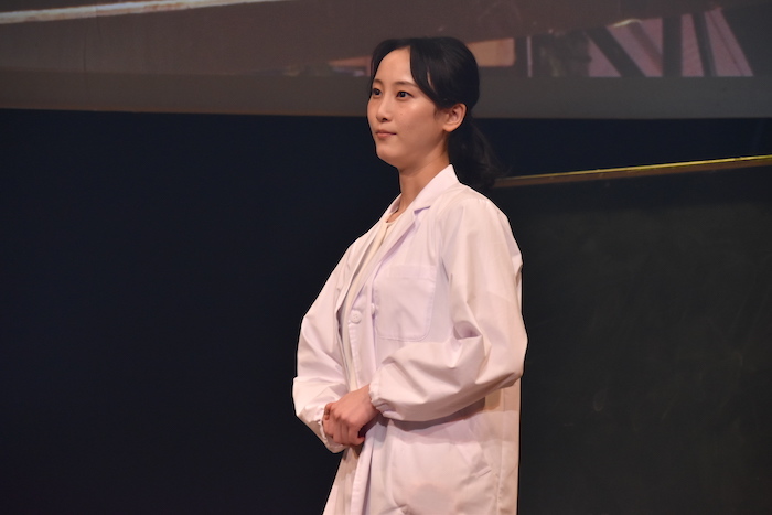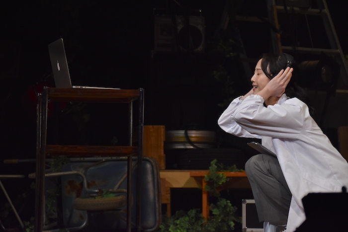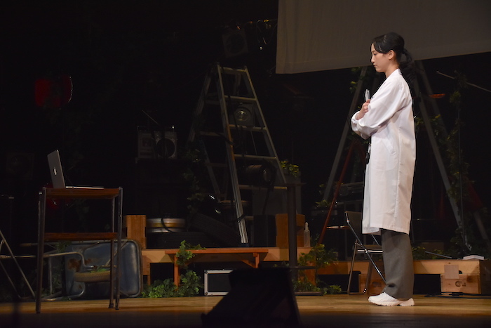初日のひとつ目の芝居は、松井玲奈による一人芝居『夏間麗のリモート授業』。脚本と演出は川尻恵太。