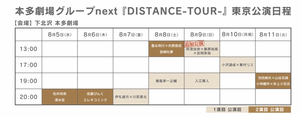 新型コロナウイルスの感染拡大により、多くの公演やイベントが中止・延期を余儀なくされ、「演劇」のあり方が問われた。その状況下で、本多劇場グループがスタートさせた企画「DISTANCE」。第一弾は2020年6月1日(月)から7日(日)までの間、11人の俳優たちが日替わりで一人芝居を演じ、無観客配信という形で上演し好評を得たが、その第二弾が8月5日(水)から本多劇場でスタートした。