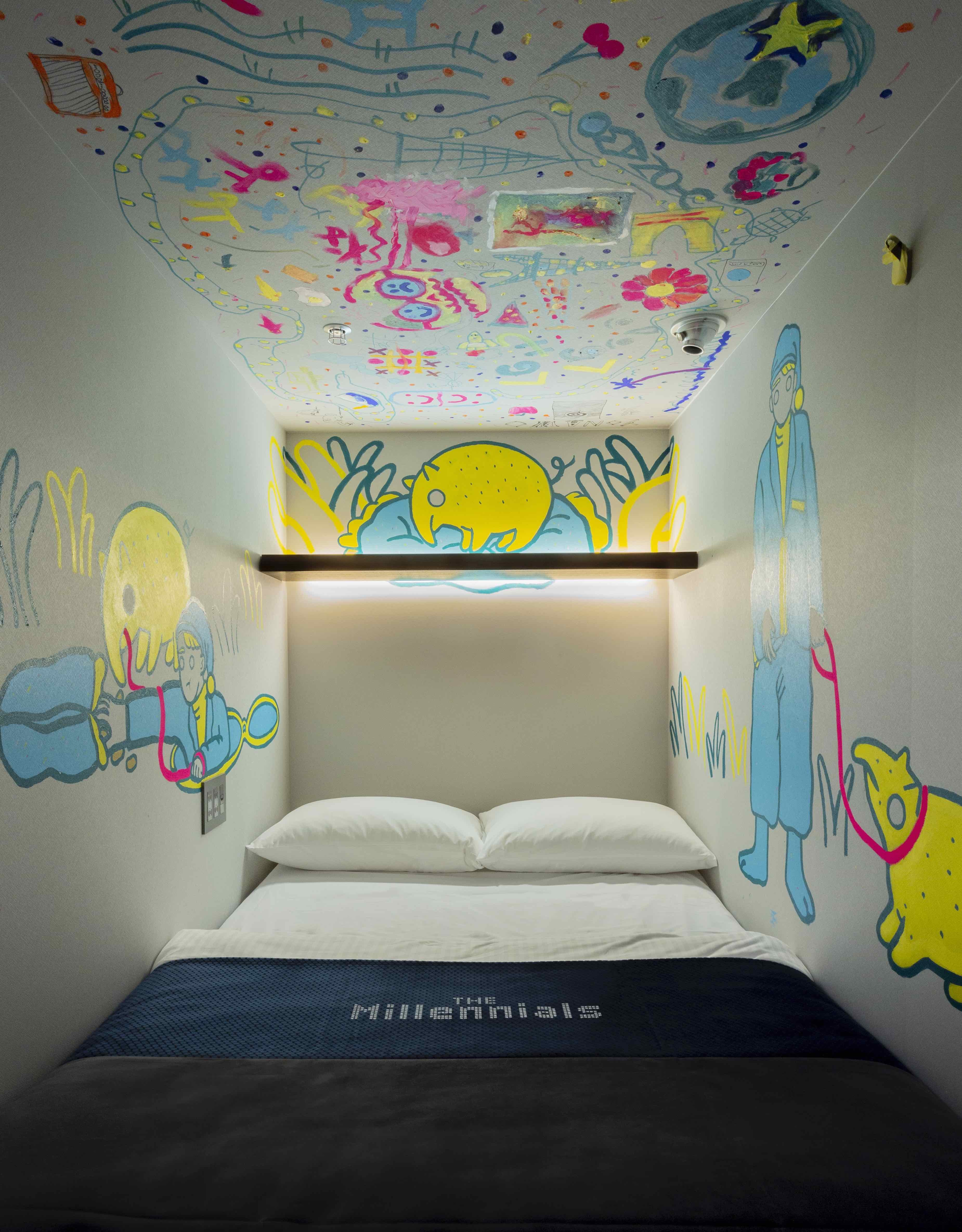 そのほかにも、野元(Dr)が同ホテル内のHotel-in-Hotel「The Millennials 福岡」のアートポッドをプロデュース。実際に手書きでペイントしたアートポッドは、世界で一つだけの空間に仕上がっている。