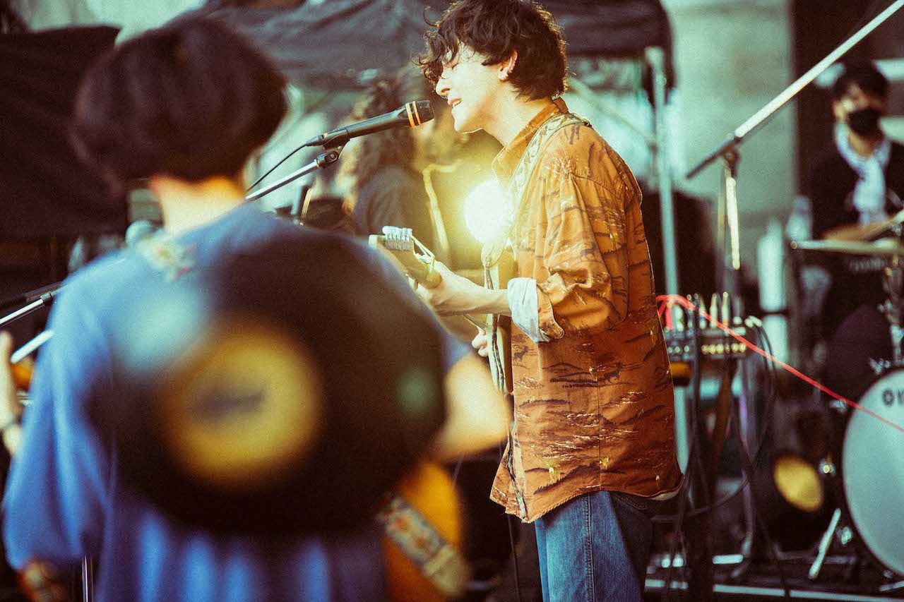 高橋が「僕は岩手県花巻市にある桜町の出身で。その街を歌った曲をやります。大阪にいても、どこにいても、家族や友達を曲ひとつで感じられるのはいいことだなと」と語り、続けるのは「桜町」。甘酸っぱくドリーミンなメロディが望郷の想いを切なく、美しく輝かせていく。世界が大きな変化をみせる昨今でも、大切な場所への想いは大切なまま、きっと<桜町>は誰しもの胸に変わらずあると教えてくれるようだ。