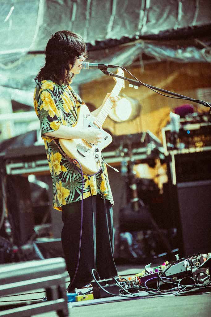 2日目のトップは、京都発の4ピース・Homecomingsにお任せを! 畳野彩加(Vo.Gt)の清らかなボーカルが野外空間によく映える1曲目「Songbirds」からスタートへ。ツインギターが織り成す豊かなメロディラインや、骨太のリズム隊による頼もしい土台でバンドサウンドの醍醐味を感じさせながらも、あふれ出るヒーリング感が彼女たちの大きな魅力のひとつだろう。