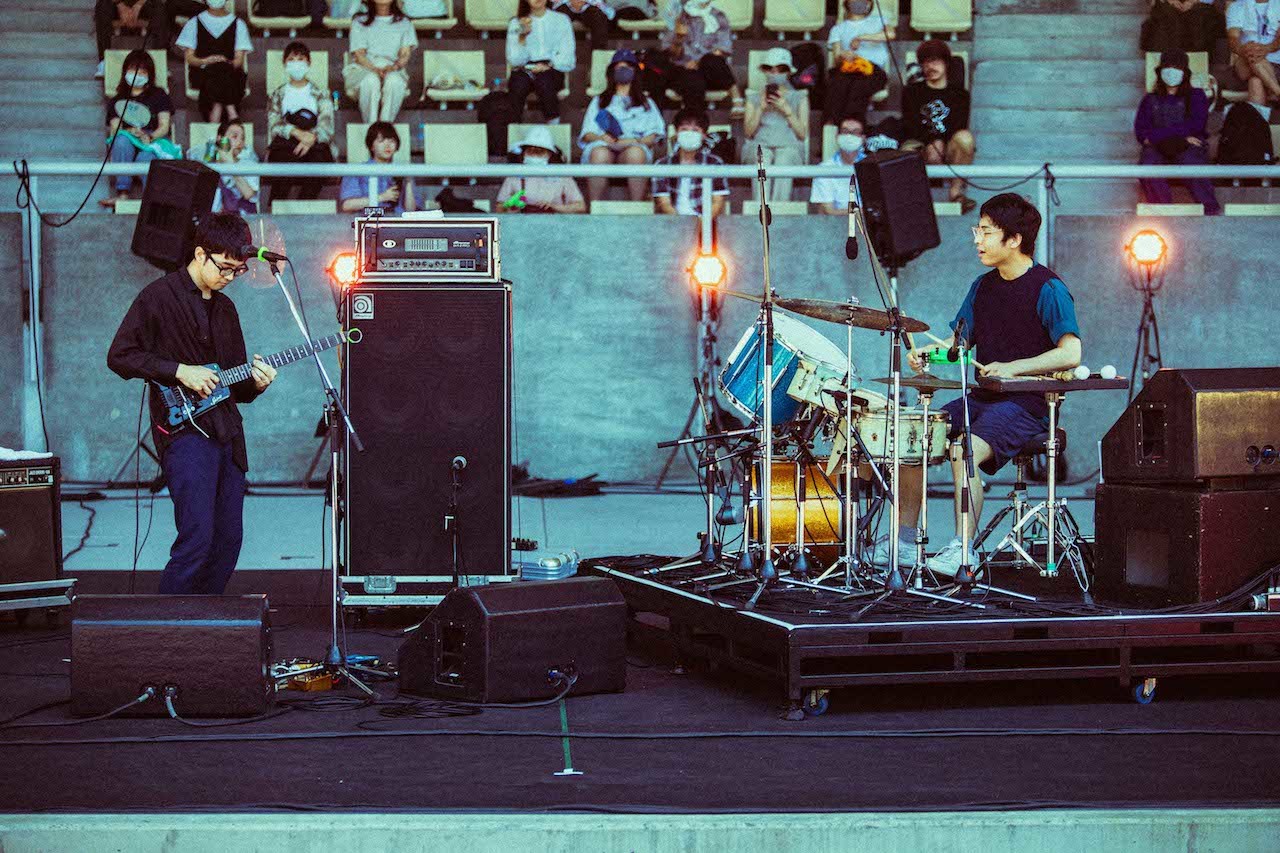 長尺の序奏で一層ギアを上げつつ、「若者たち」ではフロントふたりが向かい合って弾き合う様に高揚感が高まり、塩塚が「最高!」と飛び跳ねながらプレイするエモーショナルな「天気予報」までたっぷり生音のシャワーをもたらした3人。いい意味でソリッドな印象を裏切りながら、人間臭い実直なパフォーマンスで魅了してくれた。