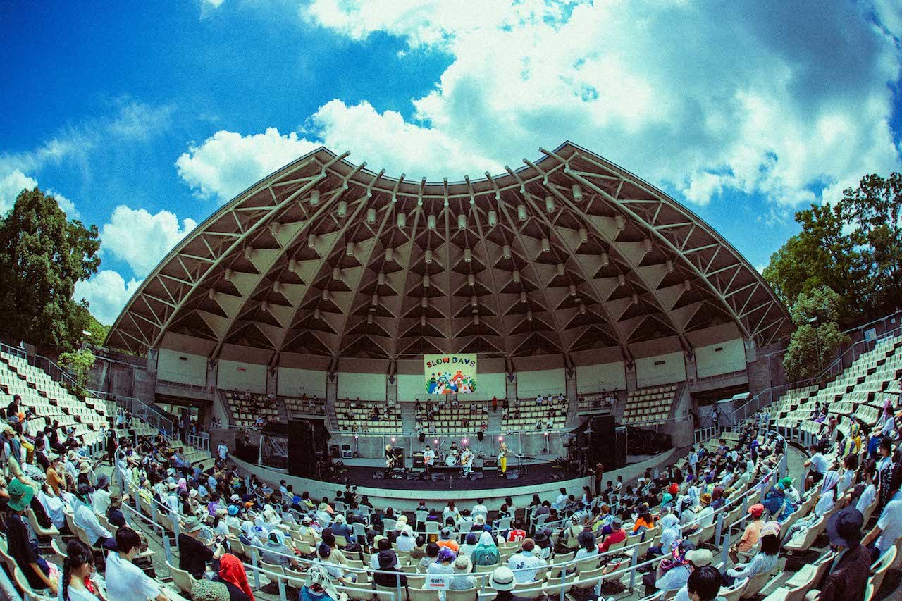昨年、野外の開放的なムードを存分に活かしたリラックス・モードで好評を博したイベント『SLOW DAYS』。第2回となる今年はコロナ禍の影響で、4月の開催予定だったところ、7月18・19日に延期。様々なハードルを乗り越え、大阪・服部緑地野外音楽堂にて開催されたその模様をレポートする。