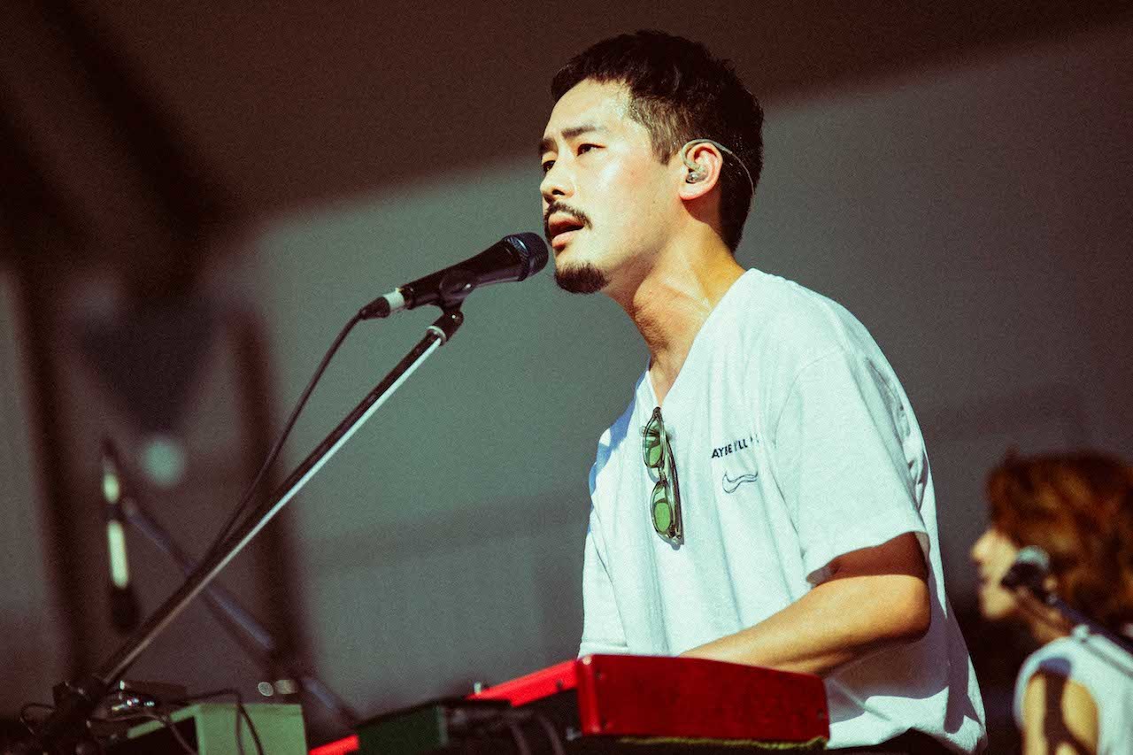 いよいよ初日のエンドロールが近づく服部緑地野外音楽堂へ涼風を吹かせたのは、マルチプレイヤー・河原太朗のソロプロジェクト・TENDREだ。