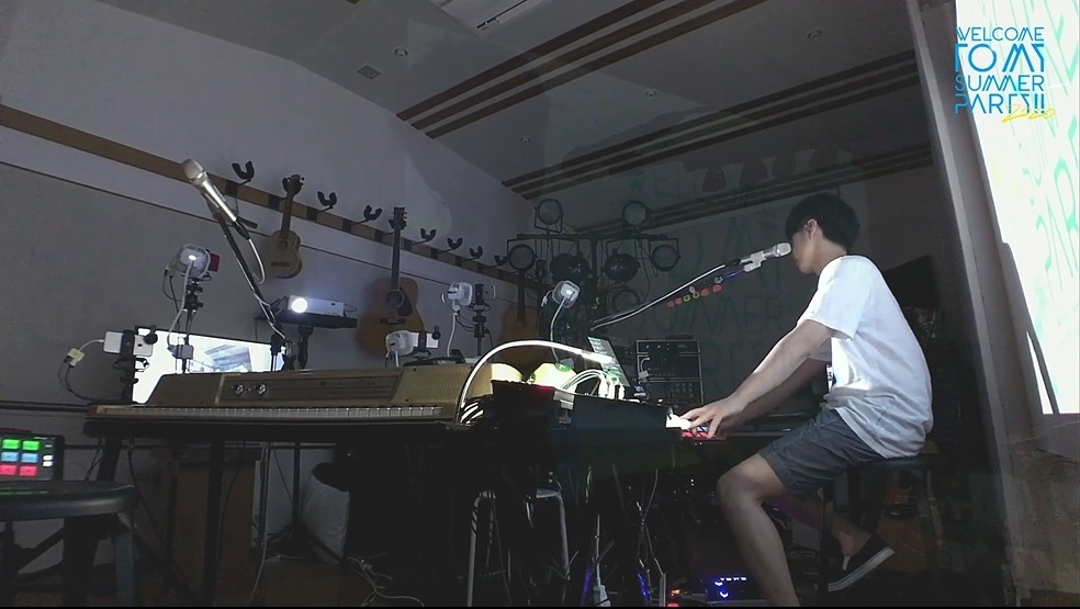 磯貝サイモンといえば、デビュー14年のシンガーソングライターであり、バンド活動、ゆずやflumpoolなどのライブサポート、嵐やJUJUなど数多くの楽曲提供と、マルチロールな才能を発揮するアーティスト。今回の配信ライブはその多才ぶりにさらに磨きをかけ、プライベートスタジオ“hitoride studio”を舞台に、歌、演奏、カメラ、照明、映像を一人でコントロールしている。百聞は一見に如かずだが、見逃した方のために、過去2回の配信をざっくりと振り返ってみると……。
