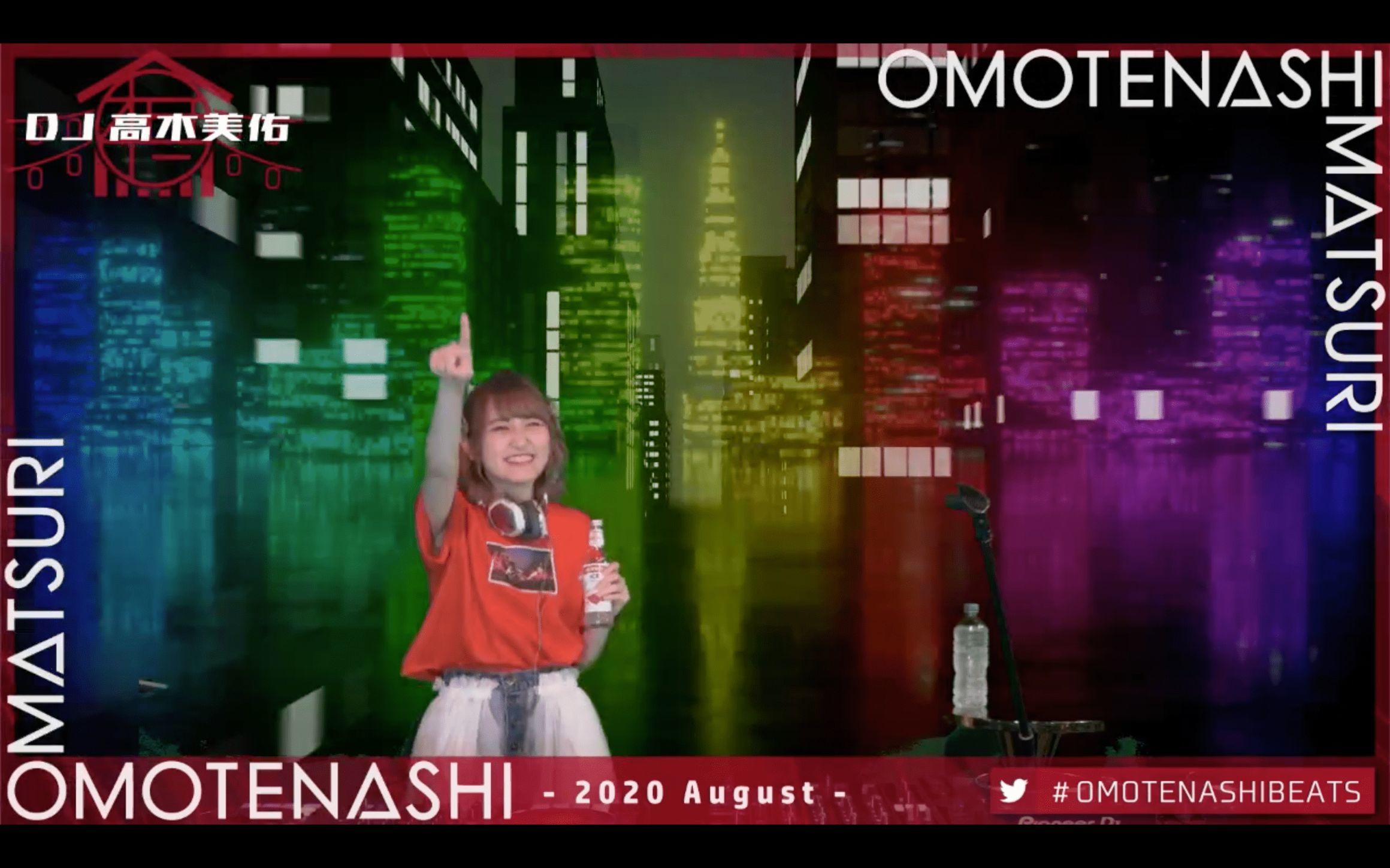『OMOTENASHI MATSURI -2020 August-』は、「J-POPをビートにのせて世界中の人々をおもてなし」をコンセプトに、日本ならではのアニメソングとダンスミュージック&クラブカルチャーを世界へ届けるプロジェクト『OMOTENASHI BEATS』が視聴無料で実施したイベント。MOTSU、DJ RK、KikKuU、西尾夕香、アイデンティティ、DJ 高木美佑、MIMORI from kolme、立花繭子*、桜men(中村仁樹,大川義秋,匹田大智)、DJ ロシエル、DJ KOO、DJ 小岩井ことり、DJ 小宮有紗ら13組が、約7時間にわたり熱いパフォーマンスを繰り広げた。