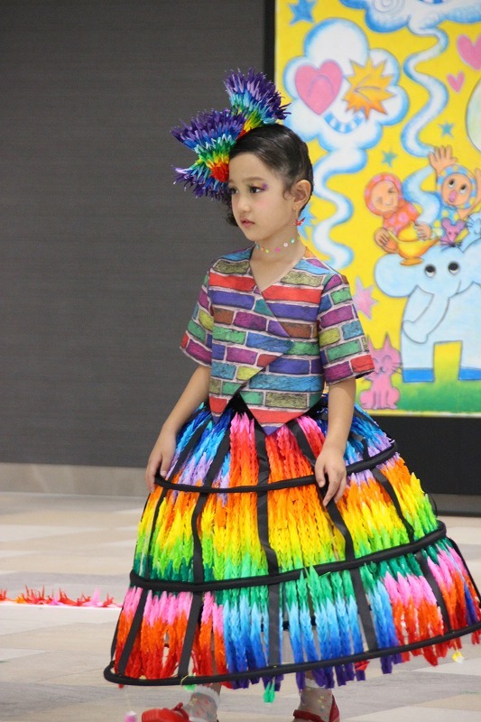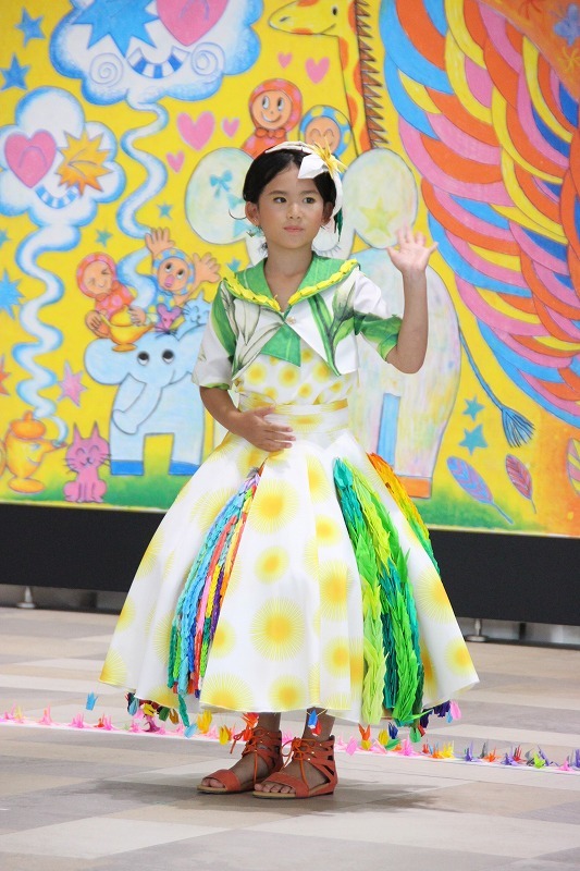 たくさんの千羽鶴がちりばめられたミニドレスを着用した大石莉心ちゃん(8)は「世界中で新型コロナウイルスに苦しんでいる人のためにワクチンを作りたい。将来はお医者さんになって、宇宙飛行士にもなりたい」と宣言。