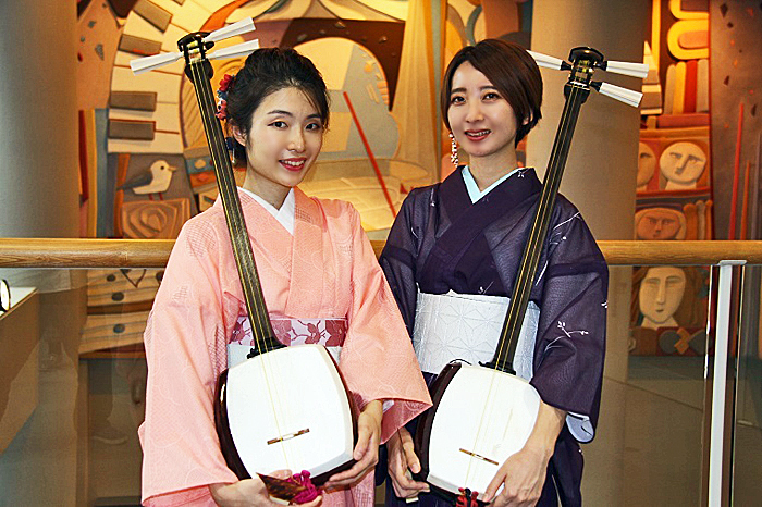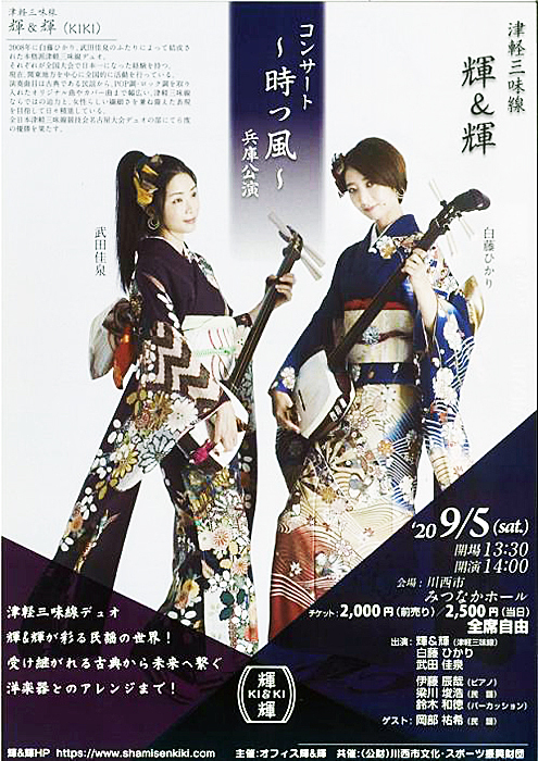 白藤ひかり(しらふじひかり)と武田佳泉(たけだかなみ)による輝&輝の二人は「こんな時だからこそ若い人に民謡を聴いて欲しい!」「津軽三味線のパワーで暗い空気を変えたい!」と話す。