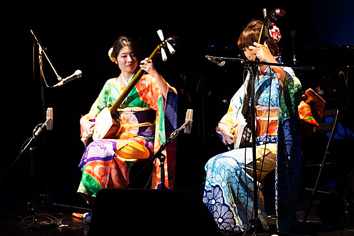洋装に津軽三味線でポップスを演奏。これも輝&輝の魅力! 写真提供:輝&輝